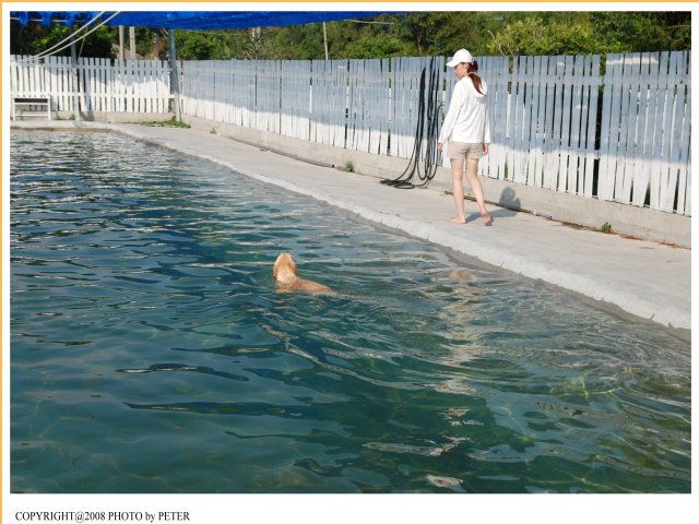接下來就是考驗牠的耐力囉!看牠奮勇的沿著泳池岸邊游,看來回家後牠又會有很長一段時間在睡覺了。