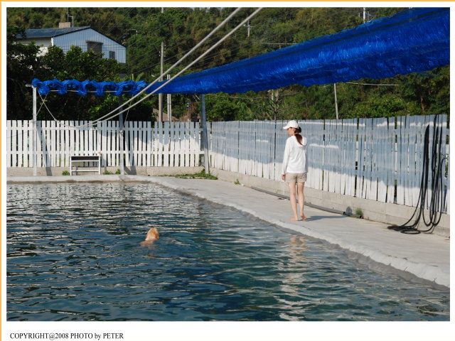 這就是泳池了,是不是蠻大的。當天的天氣真是不錯,那天還真巧、游泳的都是黃金。